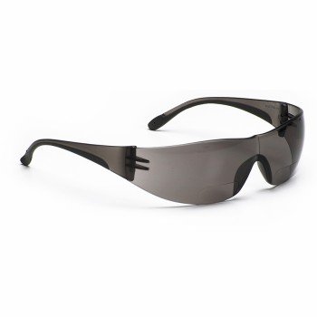 Zenon Z12R Bifocal Tinted Safety Glasses +1.50 Diopter 250-27-0115 Description:Economical magnifying bifocal for close-up clarity without distorting distance vision; built-in, 28 mm "reading lenses" are strategically placed away from direct line of sight to limit distraction. Coated, 100% polycarbonate lenses resist scratching and impact; exceed ANSI High-Velocity Impact Standards. Curved lenses wrap around face to offer protection from all angles. Basic, light-weight design features frameless style, flexible temples and saddle-bridge nosepiece for pressure-free, all-day wear.